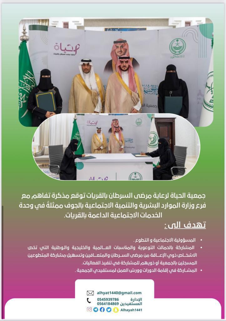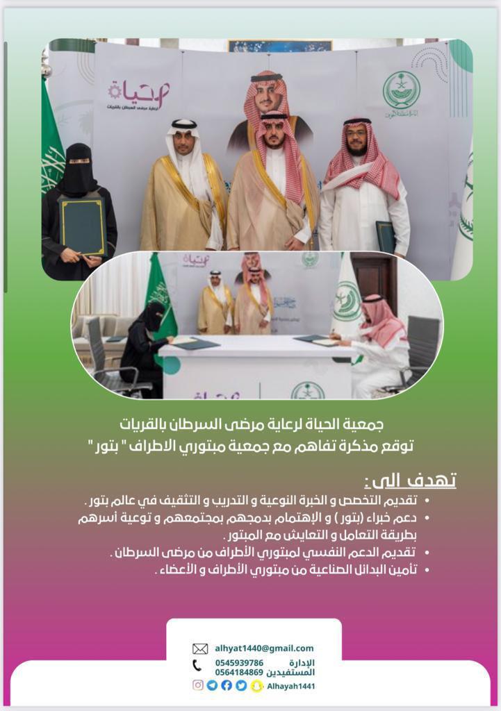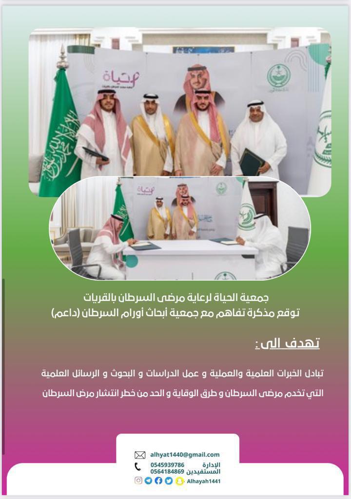 وجاءت مذكرات التفاهم والتعاون بين جمعية الحياة بالقريات وكل من: